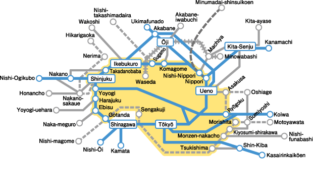 | Coverage of JR Tokyo 1-day pass |